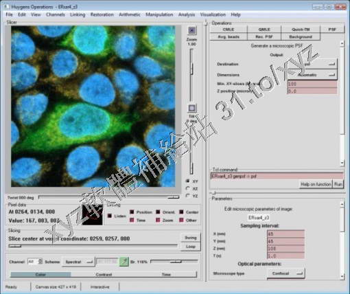 the Huygens Software, tailored for Doing Deconvolution of microscopic