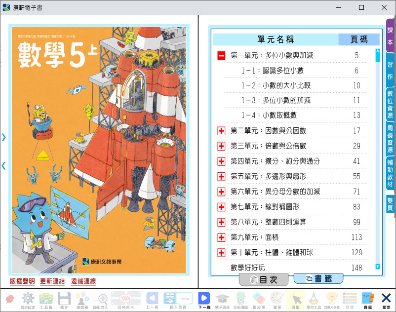 版 數學電子書 5年級(含課本、習作含解答、教學資源)教學光碟