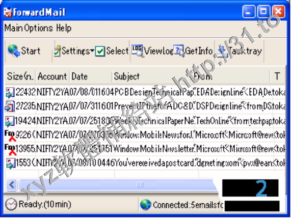 到指定的信箱,可以管理10個帳戶。可以設置篩檢程式的屬性,包括郵寄地址,檔大小。