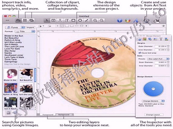 格和圖像工具,可以從itunes,iphoto,Finder,和 DVDi等程式導入數據,或嵌入JPEG,