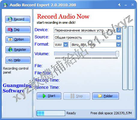 • Guangming Audio Record Expert v2.0.2007.1006 英文正式版(聲音記錄軟體)