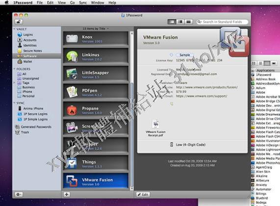 1Password是一款可以保存個人的郵箱,信用卡,購物卡,所有需要用到卡的賬號和密碼的軟體。