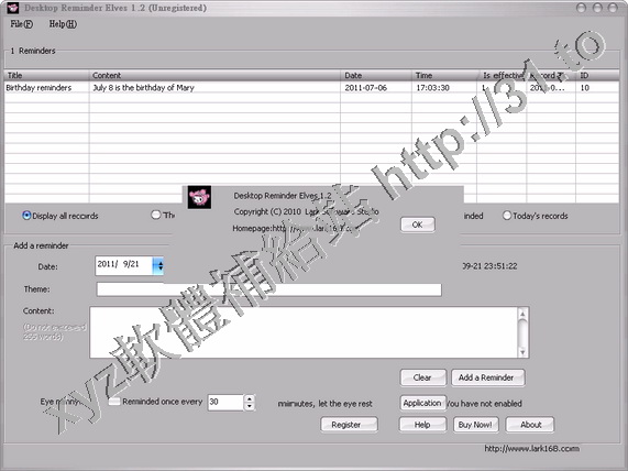Lark Desktop Reminder Elves v1.2 英文正式版(桌面提醒軟體)